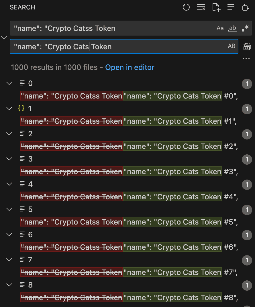 At this point, you should be able to download a compressed file containing all 10,000 items from 0 to 9999 via your IPFS Client (Node). You should extract the folder and open it in a text editor. I will be using VS Code in this example.